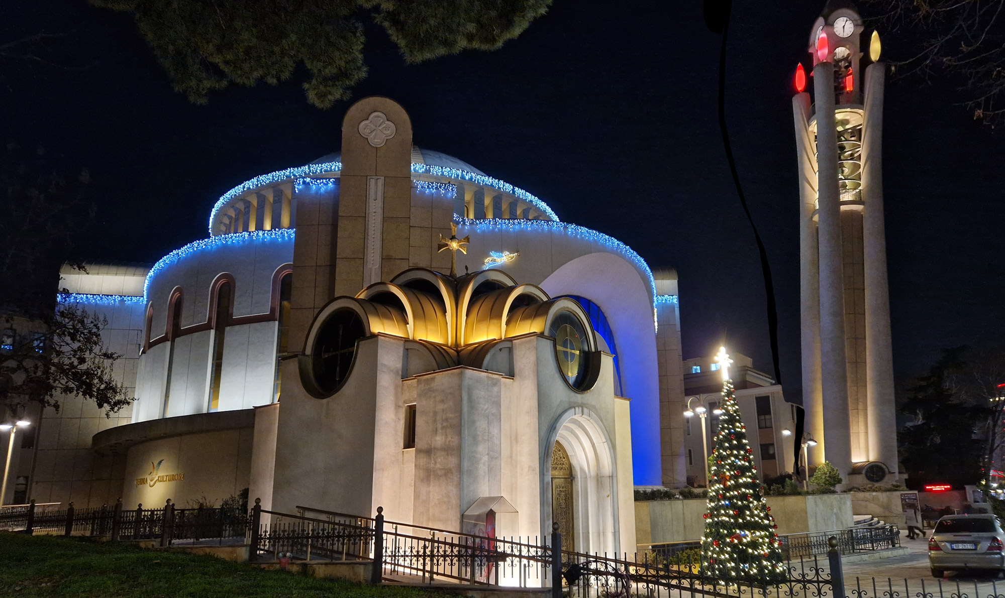 La siguiente parada es la Catedral Ortodoxa de la Resurrección de Cristo en Tirana, inaugurada en 2012, es la tercera iglesia ortodoxa más grande de los Balcanes y un símbolo del renacimiento religioso tras el ateísmo estatal. Su arquitectura destaca por una imponente cúpula de 32 metros de altura revestida en mosaico dorado y un campanario de 46 metros compuesto por cuatro velas que representan a los evangelistas.