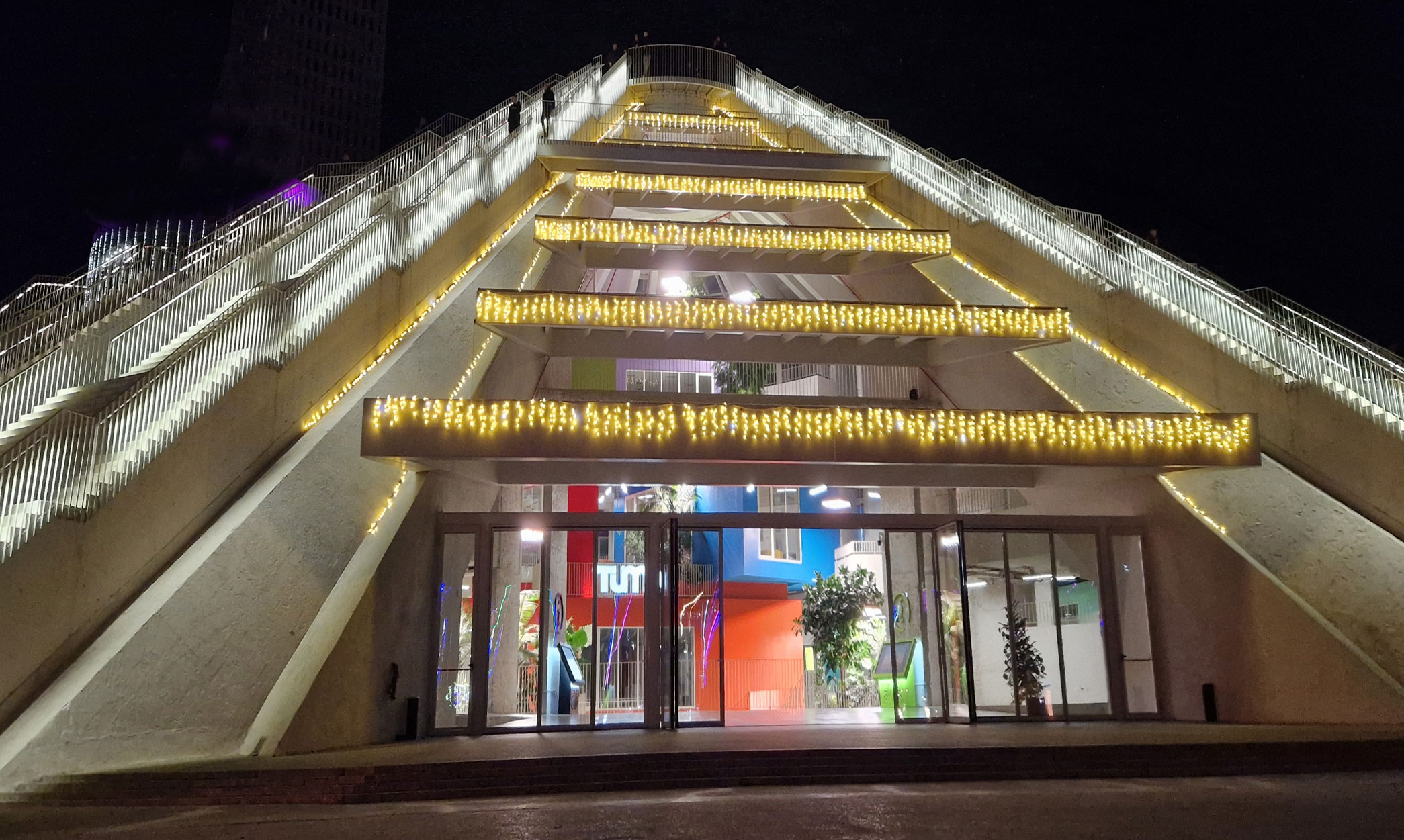 Además, se integró un conjunto de módulos y cajas de colores destinados a albergar talleres, estudios, cafeterías, incubadoras de empresas y aulas para programas educativos gratuitos orientados a la juventud albanesa, especialmente en áreas tecnológicas. Con esta transformación, la Pirámide dejó de ser un monumento estático para convertirse en un centro cultural dinámico, un parque urbano y un símbolo de renovación.