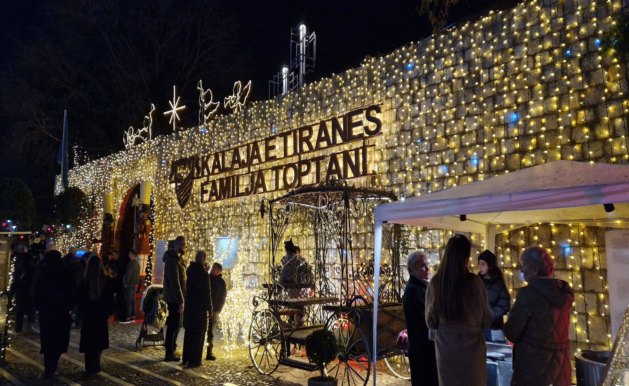 Durante diciembre, la plaza se llena de cafés, puestos de comida, atracciones, música en directo y un gran árbol de Navidad, convirtiéndose en el centro de la vida social de la ciudad . El mercado ofrece un ambiente cálido y muy familiar, con decoraciones brillantes, productos artesanales y delicias tradicionales albanesas, pensado para que la gente pasee, compre regalos y disfrute de la temporada .