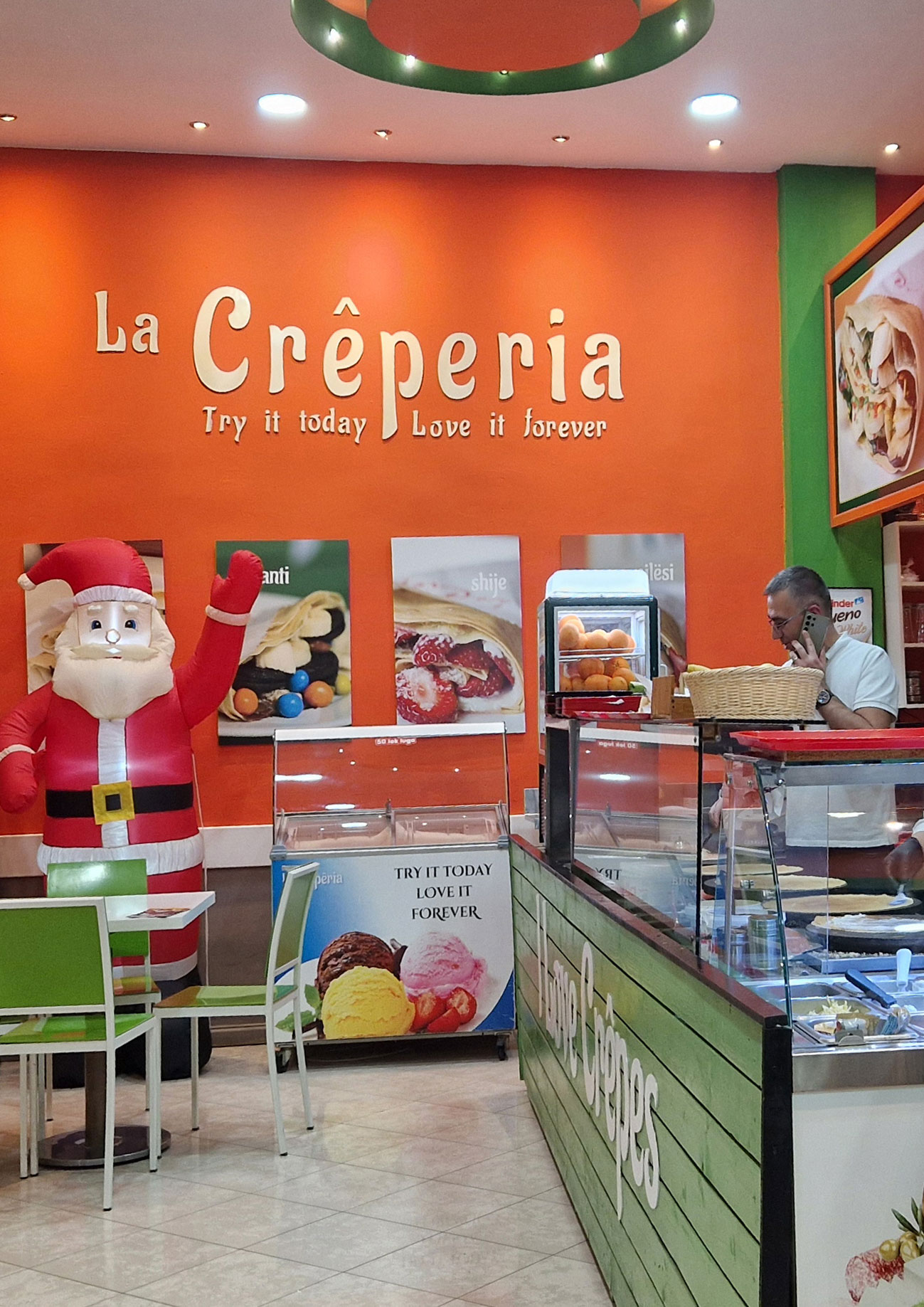 Vuelta al hotel, cenamo en el mercadillo navideño que en estas fechas hay en la plaza Skanderberg, probamos el queso a la parrilla y mas productos locales que estan muy bien.