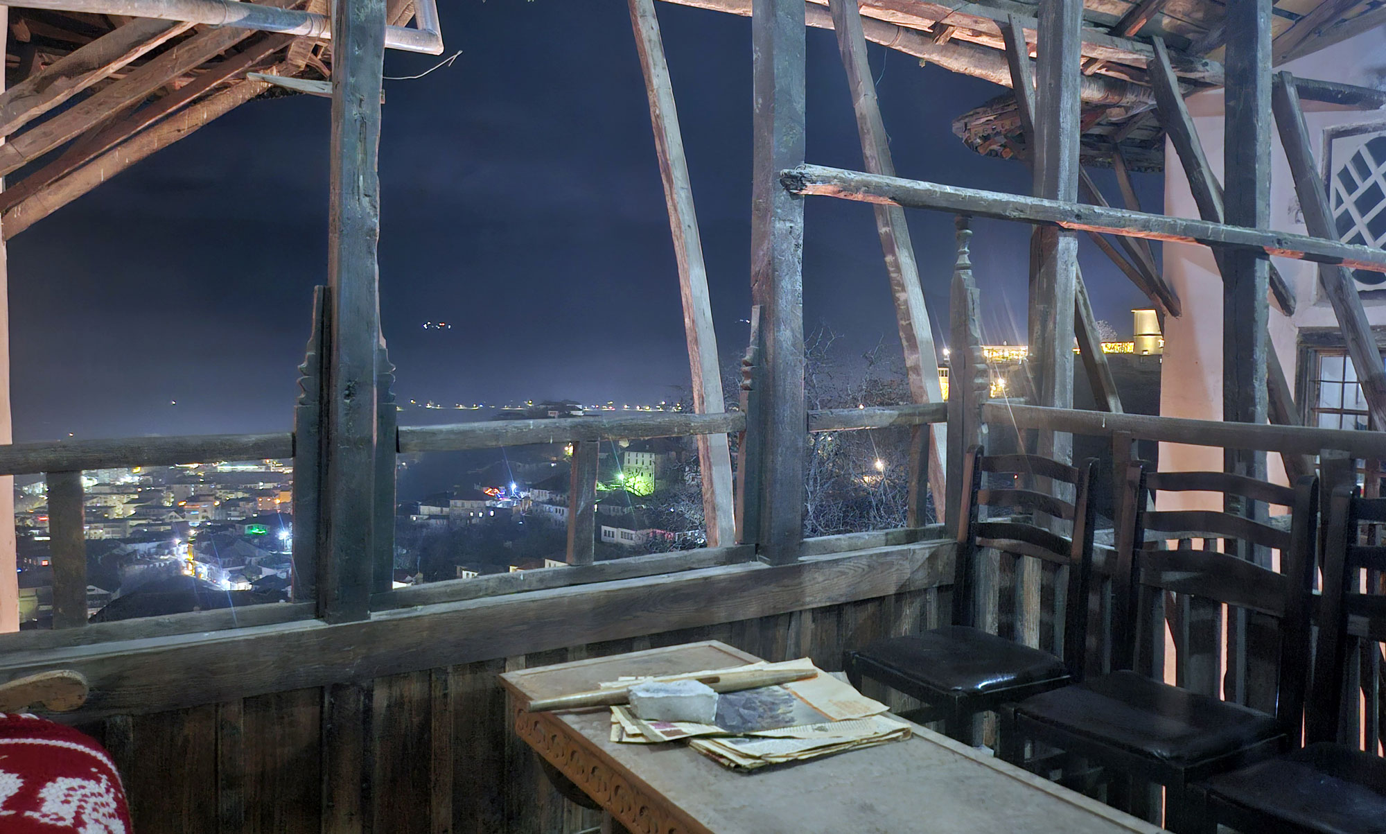 Las habitaciones siguen esa misma línea, amplias, muy limpias, con camas grandes, textiles cuidados y baños generosos; muchas de ellas se abren hacia vistas que abarcan el castillo, el valle del Osum o las montañas que rodean Berat. El hotel funciona como un pequeño mundo propio: desayuno abundante con productos locales, cafetería, restaurante, spa, aparcamiento amplio y un personal que suele recibir elogios por su amabilidad y eficiencia.