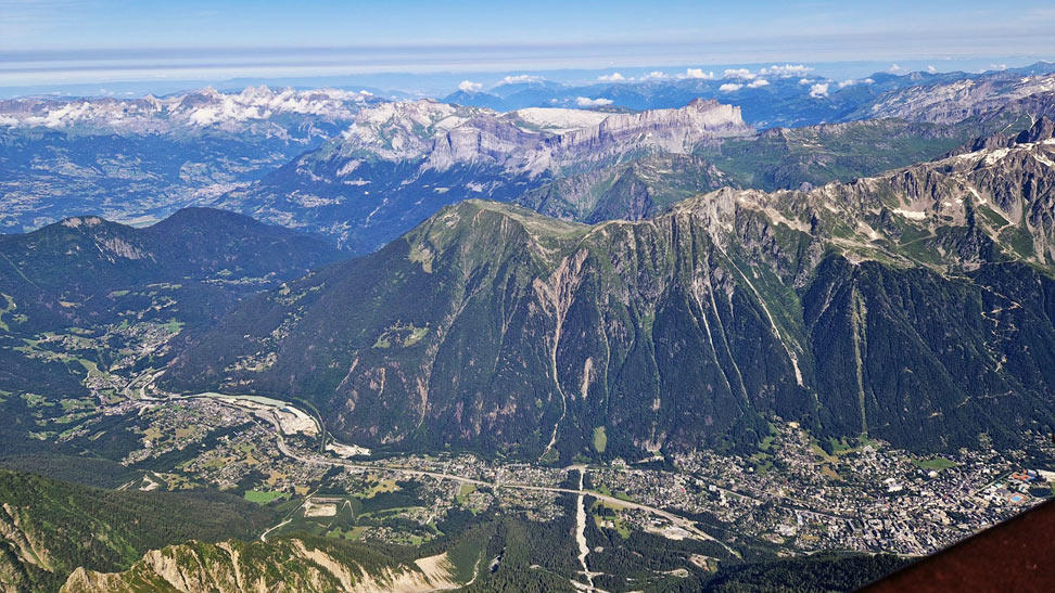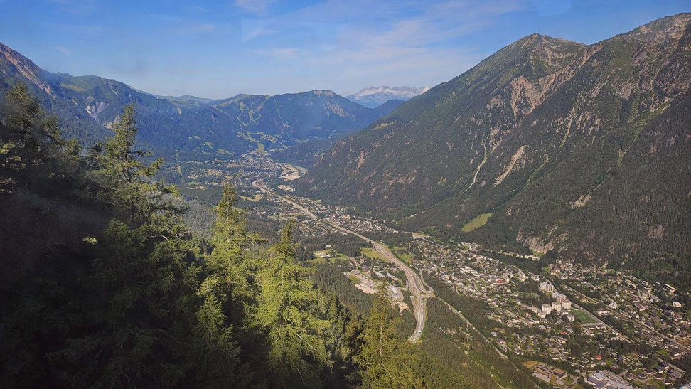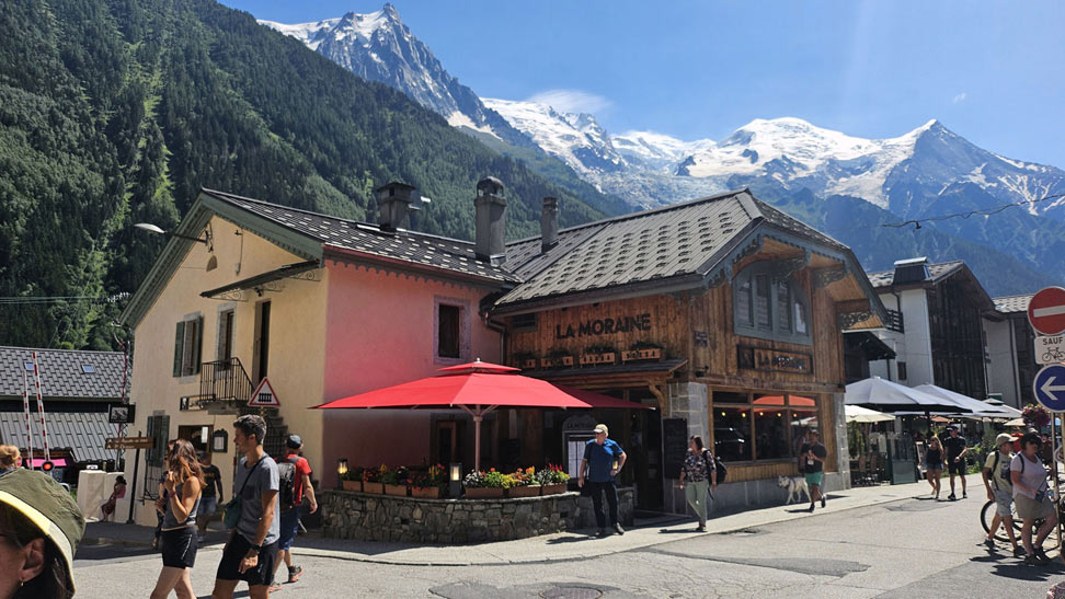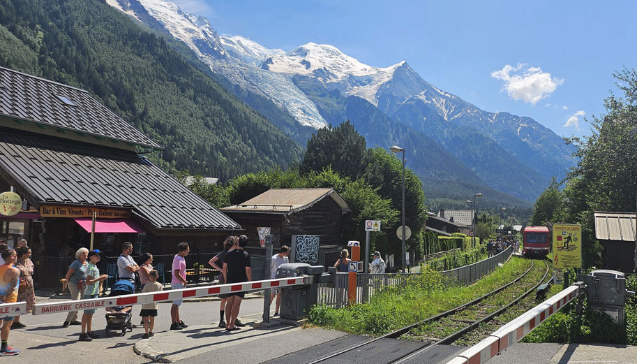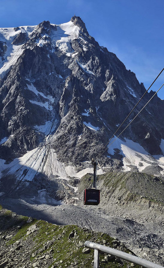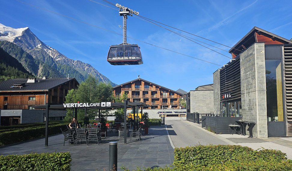 Chamonix-Mont-Blanc (generalmente abreviado como Chamonix) es un área turística cerca de la unión de las fronteras de Francia, Suiza e Italia. La base del Mont Blanc, la cumbre más alta de los Alpes, es famosa por el esquí. Durante todo el año, los funiculares llevan a los visitantes a varias cimas cercanas con vistas panorámicas, incluida Aiguille du Midi, sobre la ciudad, y Punta Helbronner, frente a amplios campos de glaciares en la frontera con Italia.