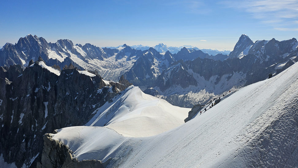 Hace más de 60 años que la emblemática aguja de Chamonix, que se alza imponente entre las más altas de la zona, es todo un referente mundial. Desde el centro de Chamonix, el teleférico de la Aiguille du Midi permite al viajero ascender en 20 minutos hasta las puertas de la alta montaña, a nada menos que 3842 m de altitud. Francia.