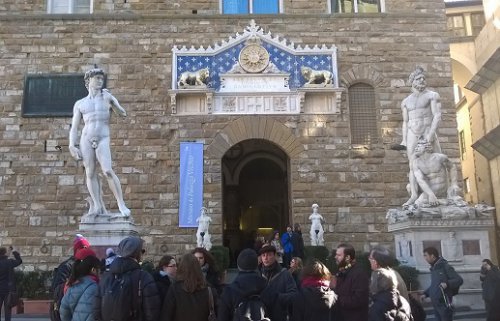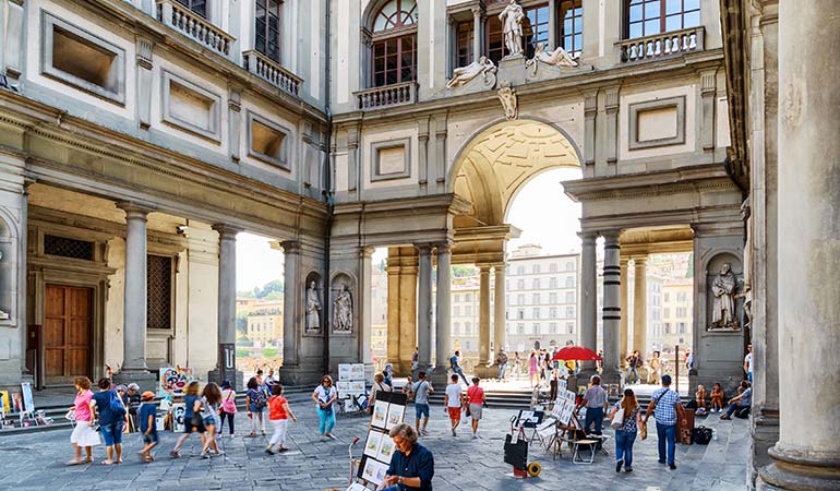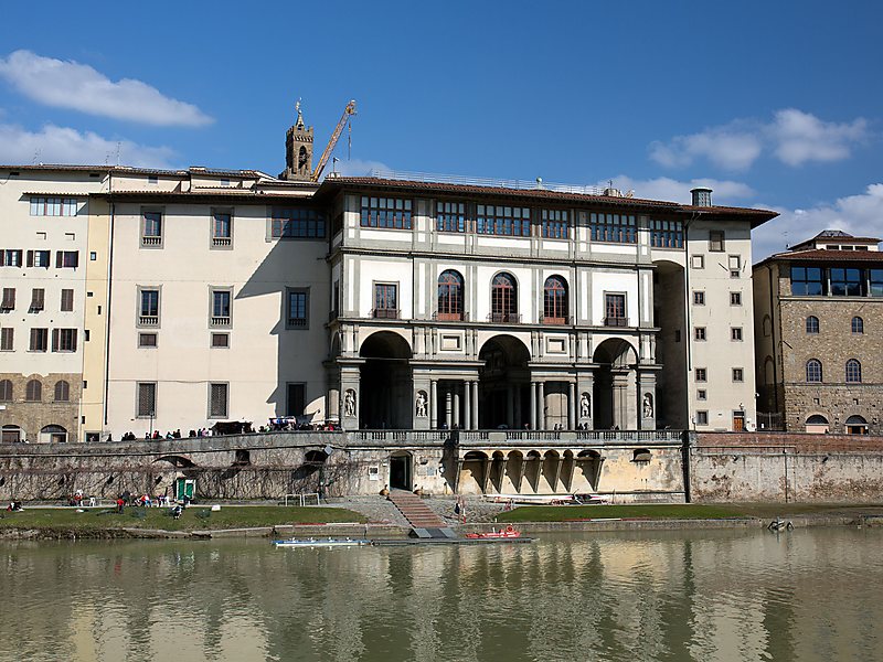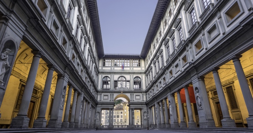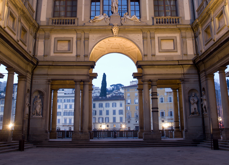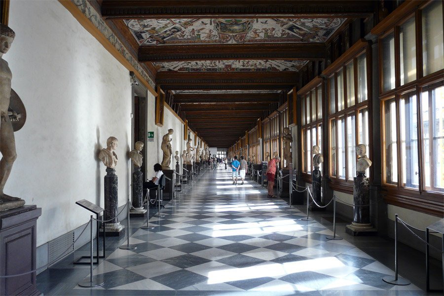 El origen de la Galería de los Uffizi, uno de los museos más grandes del mundo, se remonta a 1560, cuando Cosme I de Médicis encargó a Giorgio Vasari un proyecto para la construcción de un gran edificio con dos alas, -sobre el río y casi en el aire-, destinado a albergar la oficinas administrativas y judiciarias (Uffizi) del Estado florentino. También se debe a Vasari la construcción, realizada cinco años después, de una galería sobrealzada que, pasando sobre el Puente Viejo y la iglesia de Santa Felícita, une los Uffizi con la nueva residencia de los Médicis de palacio Pitti y termina en los Jardines de Bóboli. El núcleo originario de la Galería fue creado por Francisco I, hijo de Cosme, quien, después de haber transformado la última planta de los Uffizi en un lugar donde poder pasear, con pinturas, estatuas y otras cosas preciadas, le encargó a Buontalenti la realización de una -tribuna- en la que se reunieron decoraciones y obras de arte.