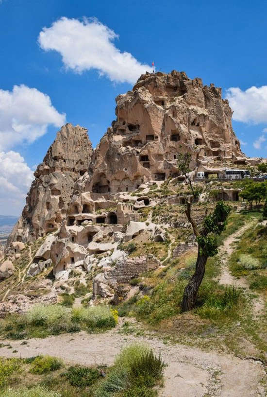 Así mismo, sus riscos y colinas fueron refugio para algunos de los primeros cristianos que buscaban la soledad y empezaron a proliferar las ermitas, las iglesias y los monasterios excavados en las caprichosas rocas de Capadocia.