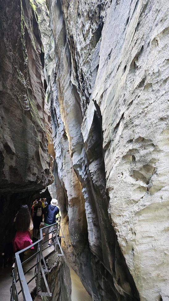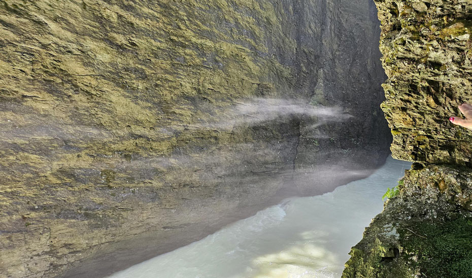 La garganta Aareschlucht entre Meiringen e Innertkirchen tiene unos 200 metros de profundidad y apenas un metro de ancho en el punto más estrecho. Este fascinante barranco se originó a partir de un tapón de rocas de piedra calcárea, denominado «Kirchet», que impidió la salida del Aare desde la región de Grimsel. Schattenhalb, Suiza.