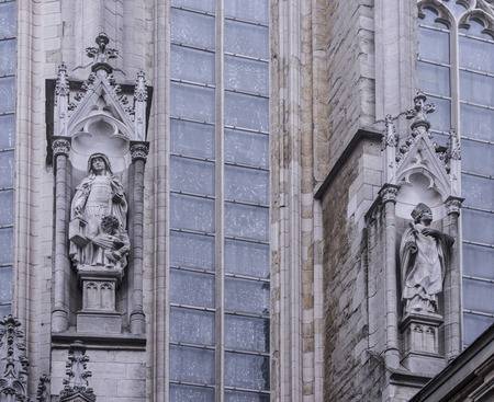En su interior, dividido en cinco naves, sobresalen el púlpito tallado en madera, las dos capillas barrocas (donde se ubican las tumbas de algunos personajes célebres, hechas de mármol blanco), varios trípticos flamencos y la famosa estatua de San Huberto, robada de la iglesia y devuelta a su emplazamiento en el siglo XIV.