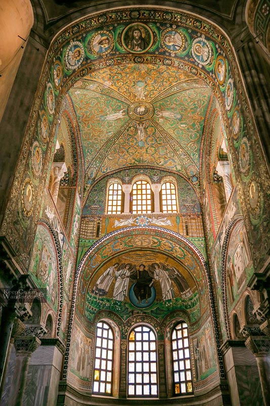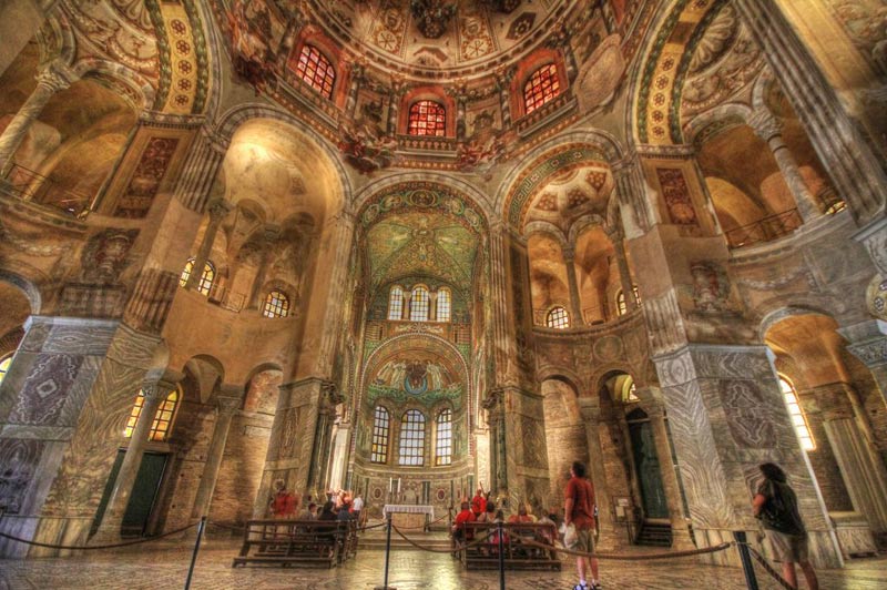 La iglesia de San Vital de Rávena es uno de los templos más importantes del arte bizantino. El emperador Justiniano reformó un edificio existente y lo embelleció. La obra se financió con el dinero del acaudalado banquero Juliano Argentario, de origen griego (aportando una cantidad aproximada de 26.000 besantes de oro).