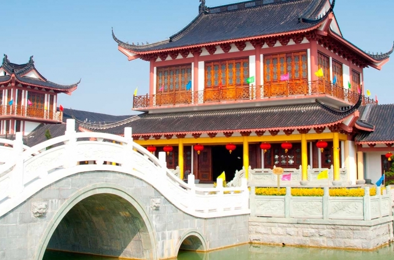 sus edificios principales también se encuentran construidos sobre el agua, apoyados en pilares de madera.